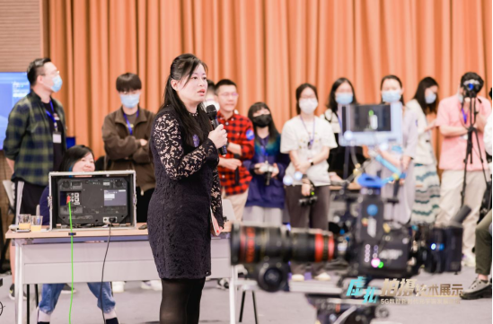 在技术分享环节,厦门大学电影学院数字媒体技术系副主任佘莹莹从本次技术展示总策划的角度,为观众揭秘了表演背后的创意与技术协同要点。她表示,本次技术展示集结了虚拟拍摄软硬件及数字资产等相关产业的领先科技,并在短短10天内高效率地由厦大“艺术+科技”跨学科团队创作出“虚拟制作+元宇宙”互动情境,是产学研协同的成功范例,不仅让院校师生近距离接触到前沿数字影视制作,也促进了影视科技与元宇宙应用场景的无缝衔接,有助于培养面向未来的创意与创新人才。