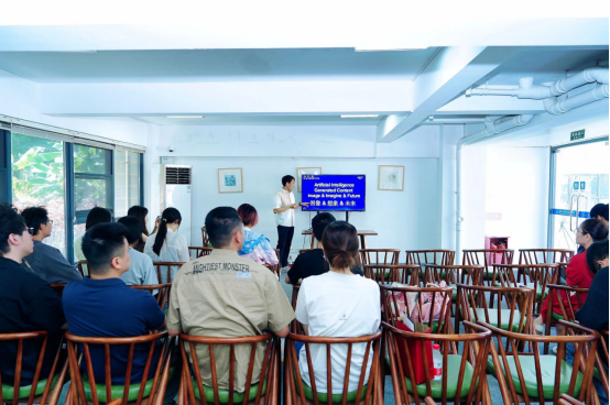 讲座共分为七个部分,刘洋首先揭示了当前人工智能已经成为影响未来经济增长的中心产业,各个行业纷纷追求变革的时代背景。他进而对人工智能发展的历史进行了一番回顾。在充分的铺垫基础上,刘洋进入AIGC与设计艺术工艺领域的关系这一主讲部分,将AIGC在这一领域所发挥的作用以及如何为学生所掌握,提高自己的工作能力与职场竞争力的方法进行一番经验分享。在主讲内容结束后,刘洋还悉心解答同学们的疑问,与大家交流心得,同学们纷纷表达自己的观点,表示收获颇丰。