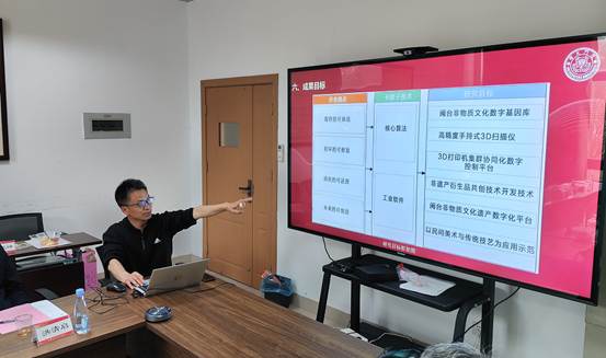 泉州市比邻三维科技有限公司总经理林逢春汇报了:闽台非物质文化遗产3D快速采集与柔性重现的核心技术。