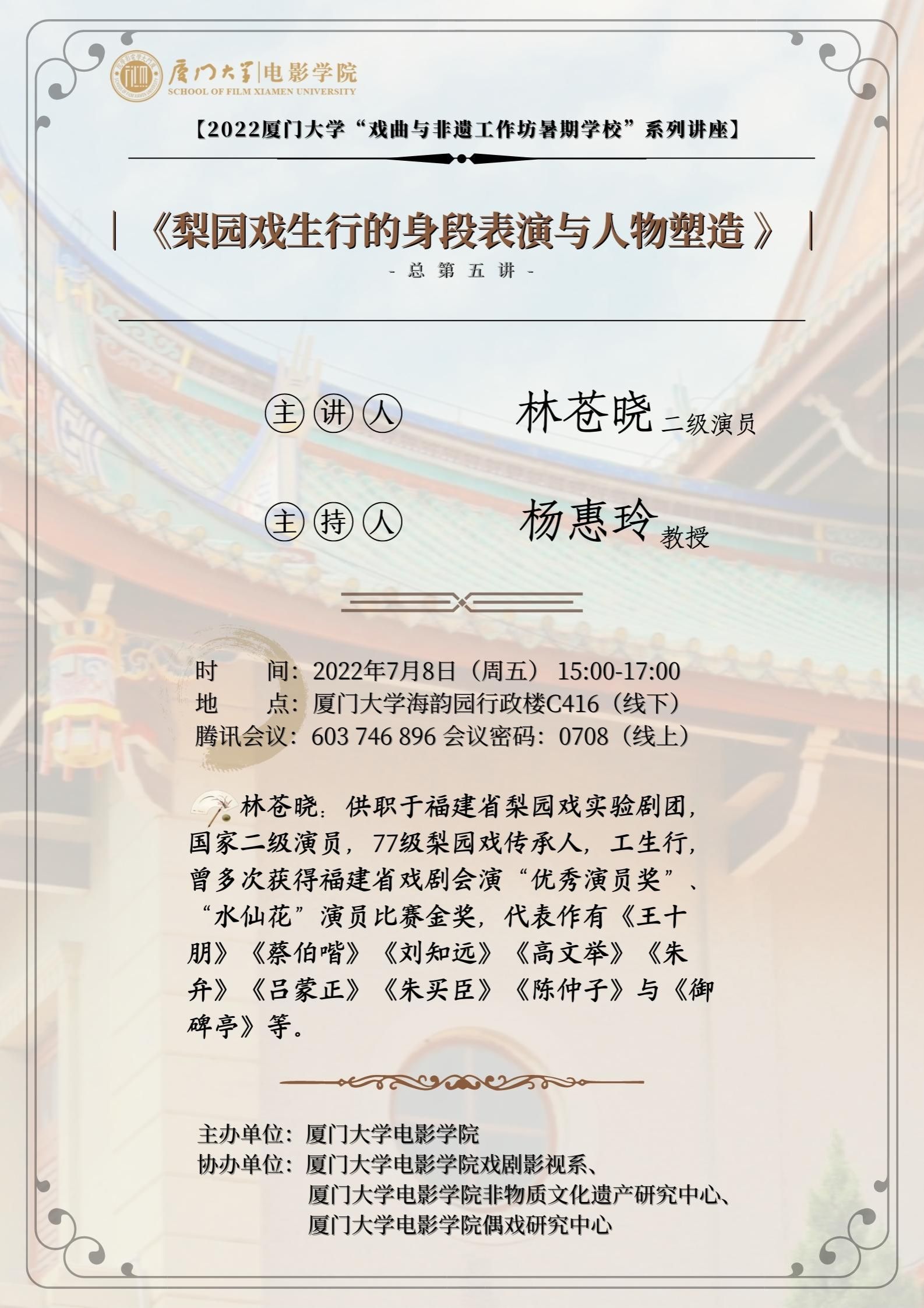 厦门大学“戏曲与非遗工作坊”暑期学校系列讲座