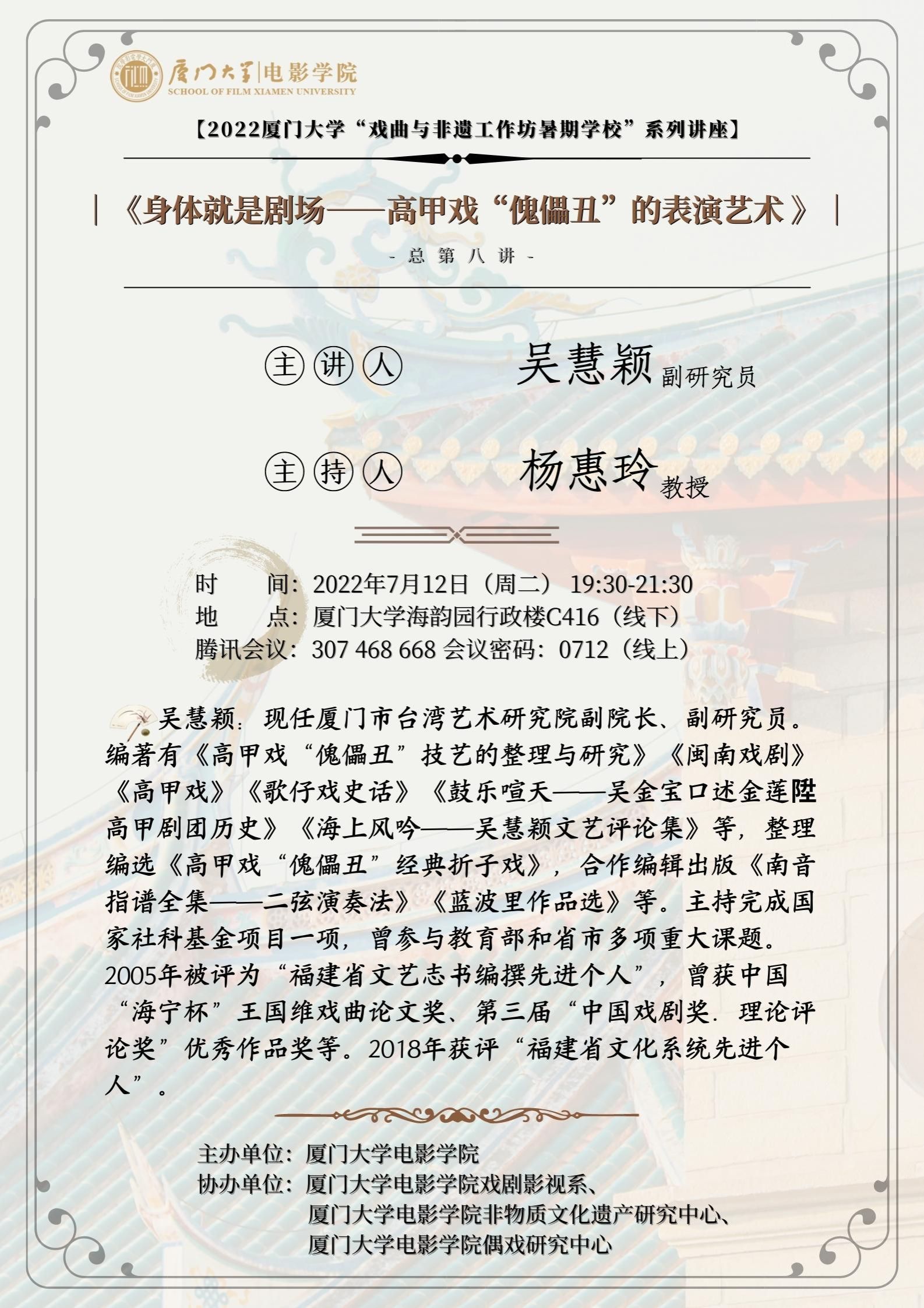 厦门大学“戏曲与非遗工作坊”暑期学校系列讲座