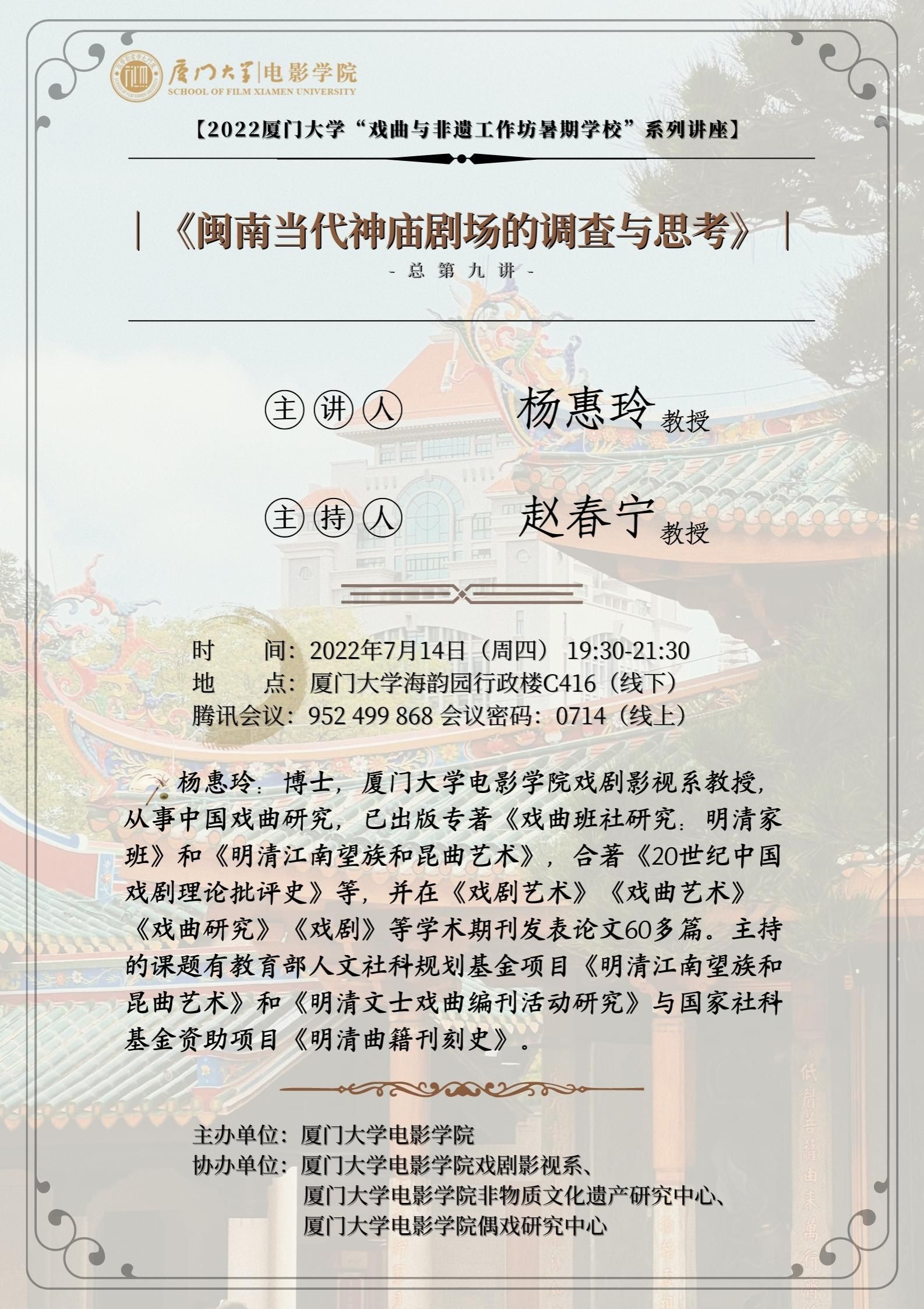 厦门大学“戏曲与非遗工作坊”暑期学校系列讲座