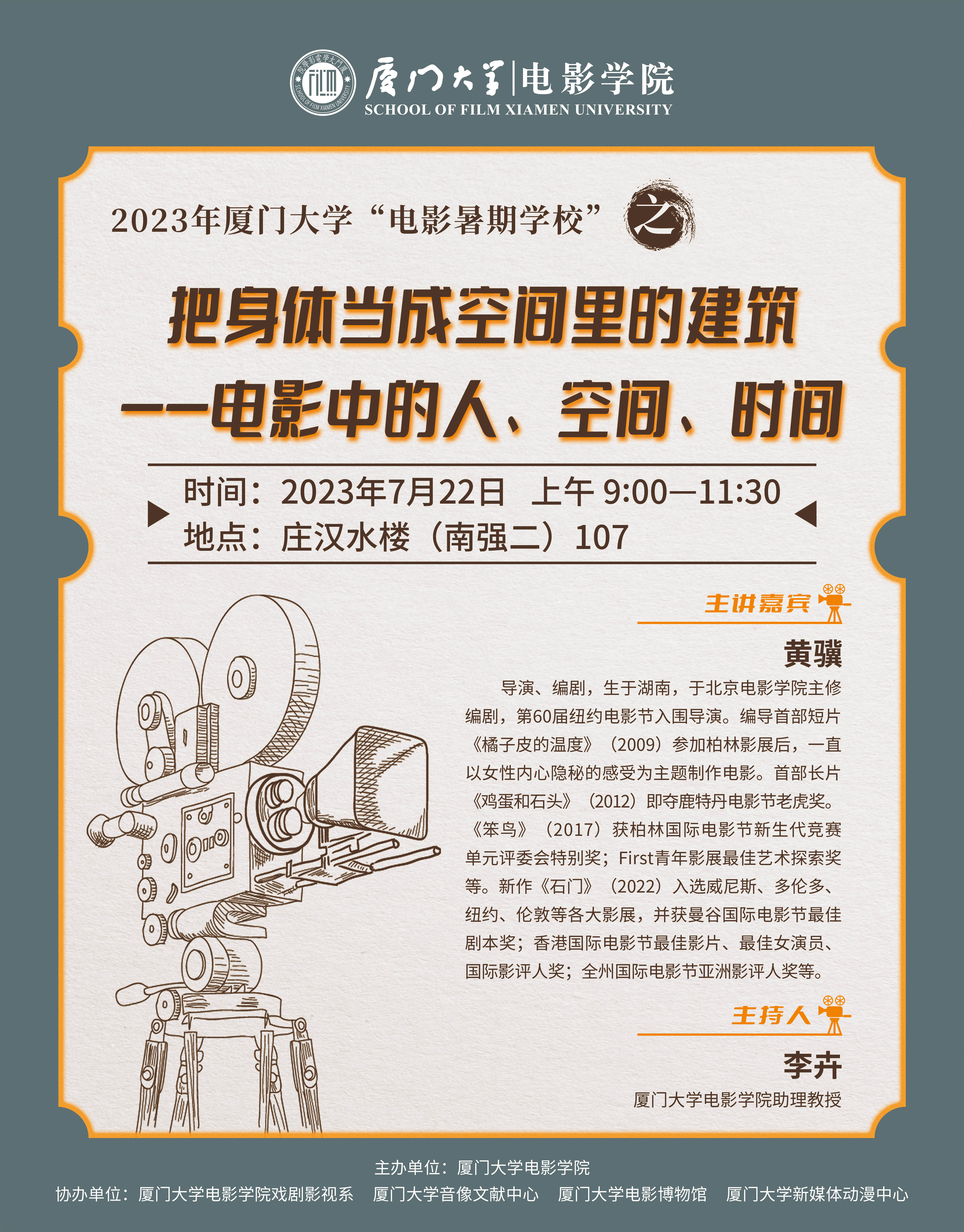 讲座主题:《把身体当成空间里的建筑——电影中的人、空间、时间》