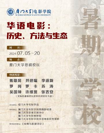 2024年7月5日至7月20日,厦门大学电影学院成功举办以“华语电影:历史、方法与生态”为主题的暑期学校。本次暑期学校特邀多位来自大陆、港台、新马等地的学者和创作者开设讲座,并安排电影博物馆参观和观影活动,具有超高热度,吸引了来自世界各地的不同学校不同专业的在读本科生和研究生,共计一百六十余名学员参与其中。此次活动旨在通过系列讲座和互动活动,深入探讨华语电影的多样性与丰富性,展示其在全球化背景下的历史脉络、多元方法与生态网络。