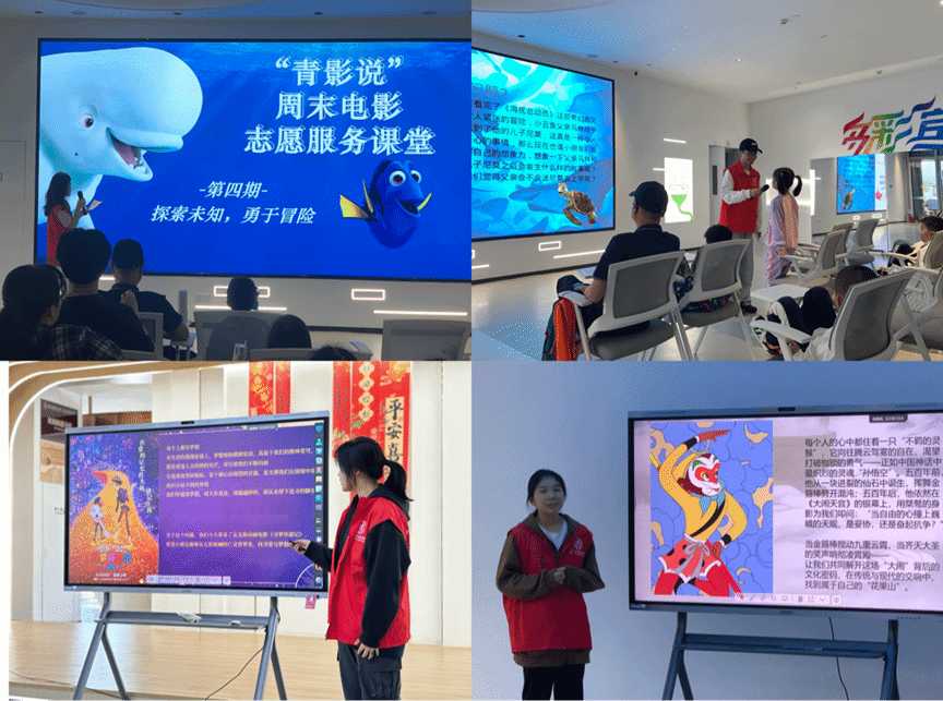 活动期间,“青影说”志愿服务团的志愿者们早早来到放映场地,布置好座椅,调试好设备,为小朋友们营造舒适的观影环境。放映过程中,他们时刻关注着小朋友们的反应,及时解答疑问,维护现场秩序。看到小朋友们专注投入的模样,志愿者们也倍感欣慰,用耐心和爱心陪伴着小朋友们度过每一场精彩的电影时光。