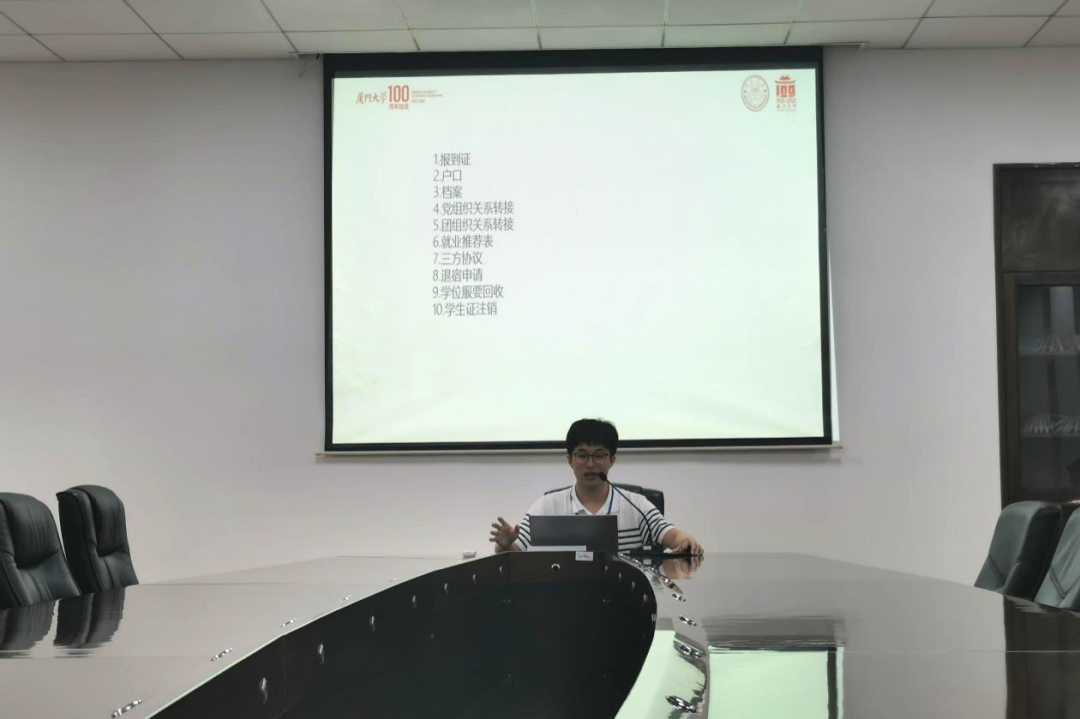周钧庭就毕业季的手续办理进行了讲解,并做了离校前的安全教育。他就各项毕业事宜作详细讲解,提醒同学们严格按照学校相关要求组织毕业材料、办理相关手续,确保顺利毕业;同时,他就消防安全、防诈骗、游泳安全、台风预防等安全事项进行了强调,提醒同学们切勿在离校前放松警惕,确保安全离校。