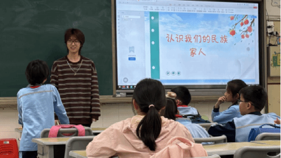 在民族团结浸润环节,同学们分享身边不同民族互帮互助的故事,在情景模拟中学会尊重差异、友善相处,并用质朴的语言表达对民族团结的美好向往。班级教师还专门介绍了福建省畲族的文化传统,让同学们对身边的少数民族有了更深入的了解,《五十六个民族五十六朵花》的旋律更让大家沉浸在民族共融的和谐氛围中。