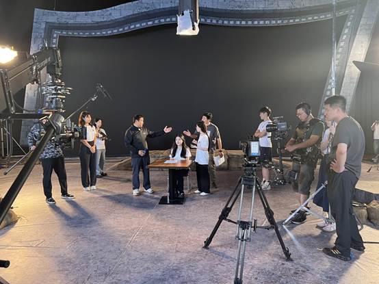 接下来,队员们亲手操作了专业的摄影机器,通过镜头“讲故事”,进一步感受到了电影拍摄制作的魅力所在,体验到了剧组工作“讲好一个故事”背后付出的汗水和努力。体验结束,同学们与经验丰富的工作人员进行了深入交流和热烈探讨。实践队成员纷纷表示,这次难得的体验受益匪浅,开阔了视野,更为今后的学习和职业生涯打下了坚实的基础。
