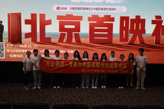7月25日,实践队带着对影视艺术的无限热忱与探索精神,参加了由陈思诚导演执导,刘昊然、陈道明、俞飞鸿等一众实力派演员倾情演绎的电影《解密》北京首映礼。实践队员与影视爱好者共同观看了这部根据著名作家麦家同名长篇小说改编,集合了悬疑、动作的影片巨制,并与主创团队进行了面对面交流。陈思诚分享了影片创作背后的心路历程,他表示,《解密》不仅是一部关于密码破译的电影,更是对那个时代人们信仰与坚持的一次深情致敬。从剧本打磨到场景构建,再到角色塑造,每一个细节都凝聚了团队的心血与智慧。刘昊然、俞飞鸿等分别畅谈了在角色塑造中的感悟与挑战,他们的专业素养与敬业精神让实践队员们深受启发。此次活动不仅为实践队员提供了一次近距离感受影视创作魅力的宝贵机会,更是一次将课堂所学知识与行业实践深度融合的难得体验。