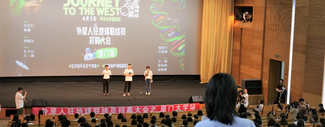 导演孔大山、编剧兼主演王一通携电影《宇宙探索编辑部》来到厦门大学,与厦大师生见面交流!此次《宇宙探索编辑部》——厦大站超前点映活动,由厦门大学电影学院主办,厦门大学影视协会、“青影说”志愿服务团队、思明电影院演武分院承办。活动受到广大师生的热烈欢迎。