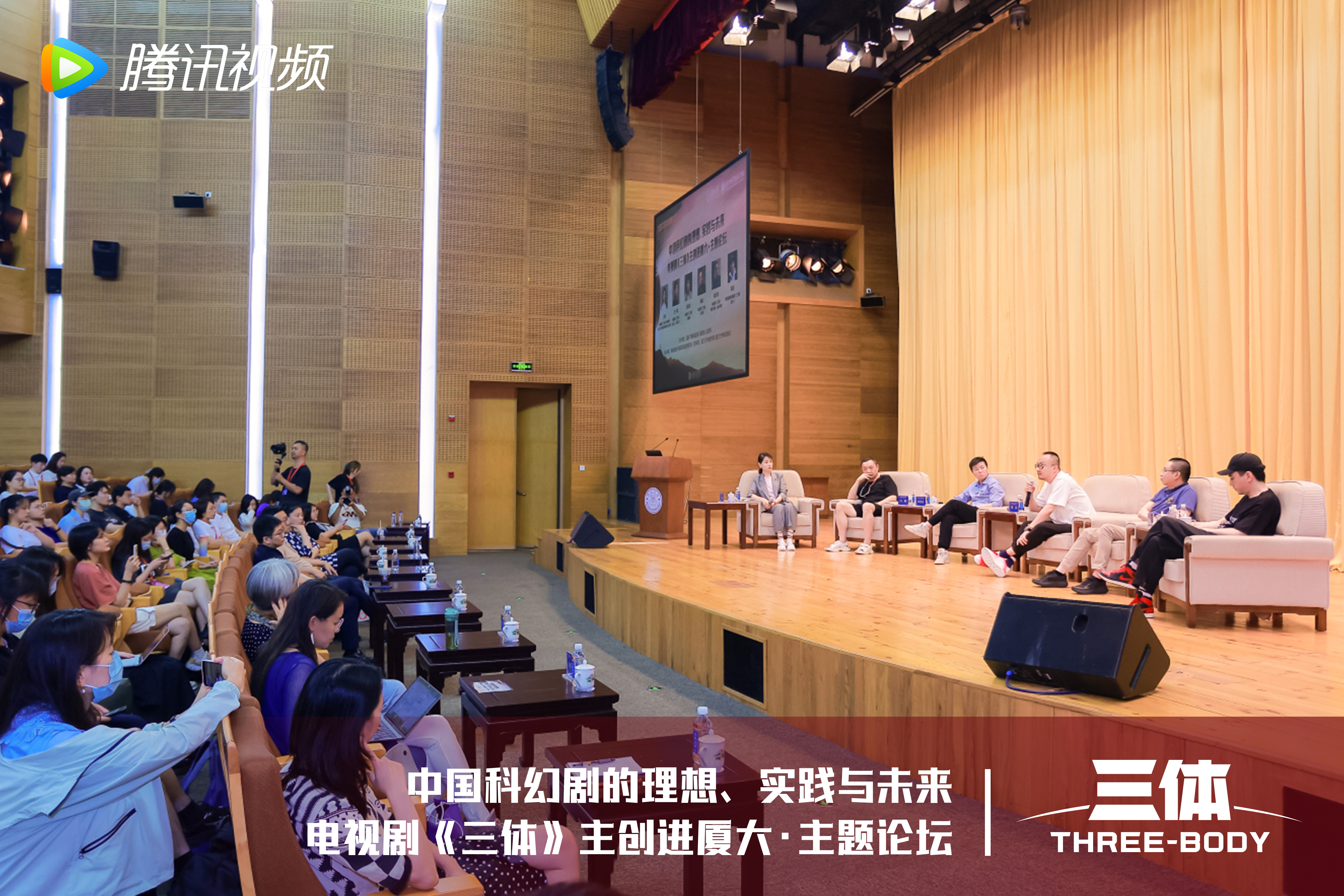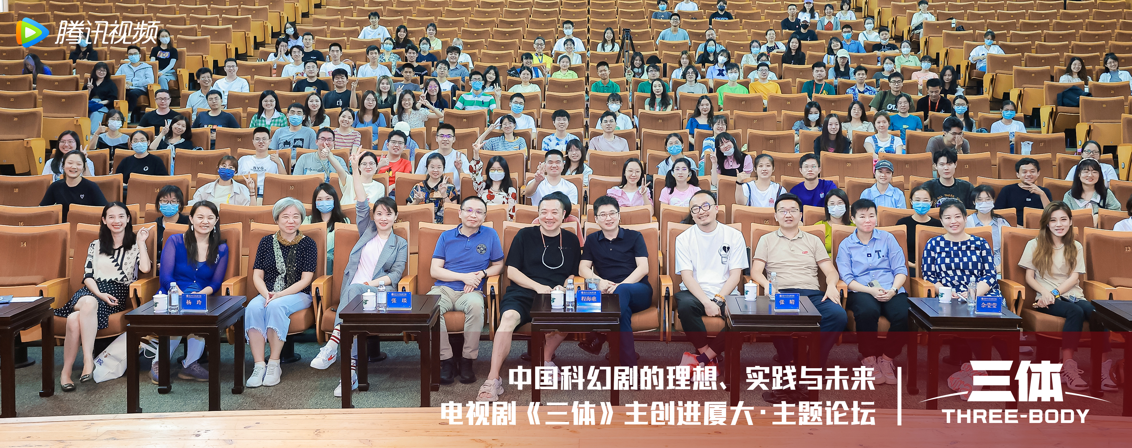 2023年6月6日下午,电视剧《三体》主创团队成员白一骢、田良良、杨磊、陆贝珂、黄星等走入厦门大学科学艺术中心报告厅,与主持人王姝(电视剧《三体》科学顾问、中国科普作协科学与影视融合专委会副主任、厦门大学电影学院博士生在读)展开对谈,围绕“中国科幻剧的理想、实践与未来”主题与在座师生分享创作体会。国家广电总局电视剧司内容一处副处长程海礁、厦门大学电影学院党委副书记张晴等参加论坛。