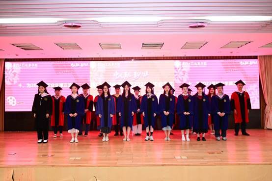 典礼最后,在热烈的掌声和乐曲声中,学院教师们走上主讲台为毕业生们拨穗祝福。这一仪式既象征着毕业学子们获得学校认可,告别这一阶段的校园生活,也饱含了老师们对毕业生的祝福与希望。大家面带笑容,郑重接受拨穗,互相拥抱庆祝,倾吐毕业的喜悦与分离的遗憾。