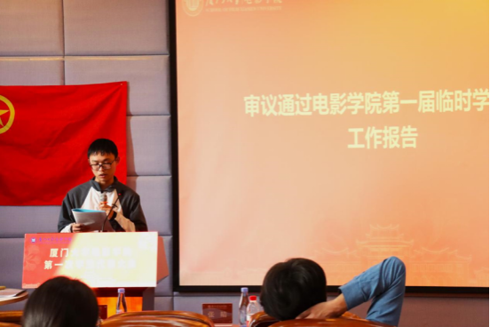 大会分别审议通过了《厦门大学电影学院学生会工作报告》《厦门大学电影学院第一届学生会主席团成员选举办法》《厦门大学电影学院第一次学生代表大会监票人、计票人名单》《厦门大学电影学院第一届学生会主席团成员候选人建议名单》,选举产生了厦门大学电影学院第一届学生会主席团:祝赫宁 汪艳 刘玉东。