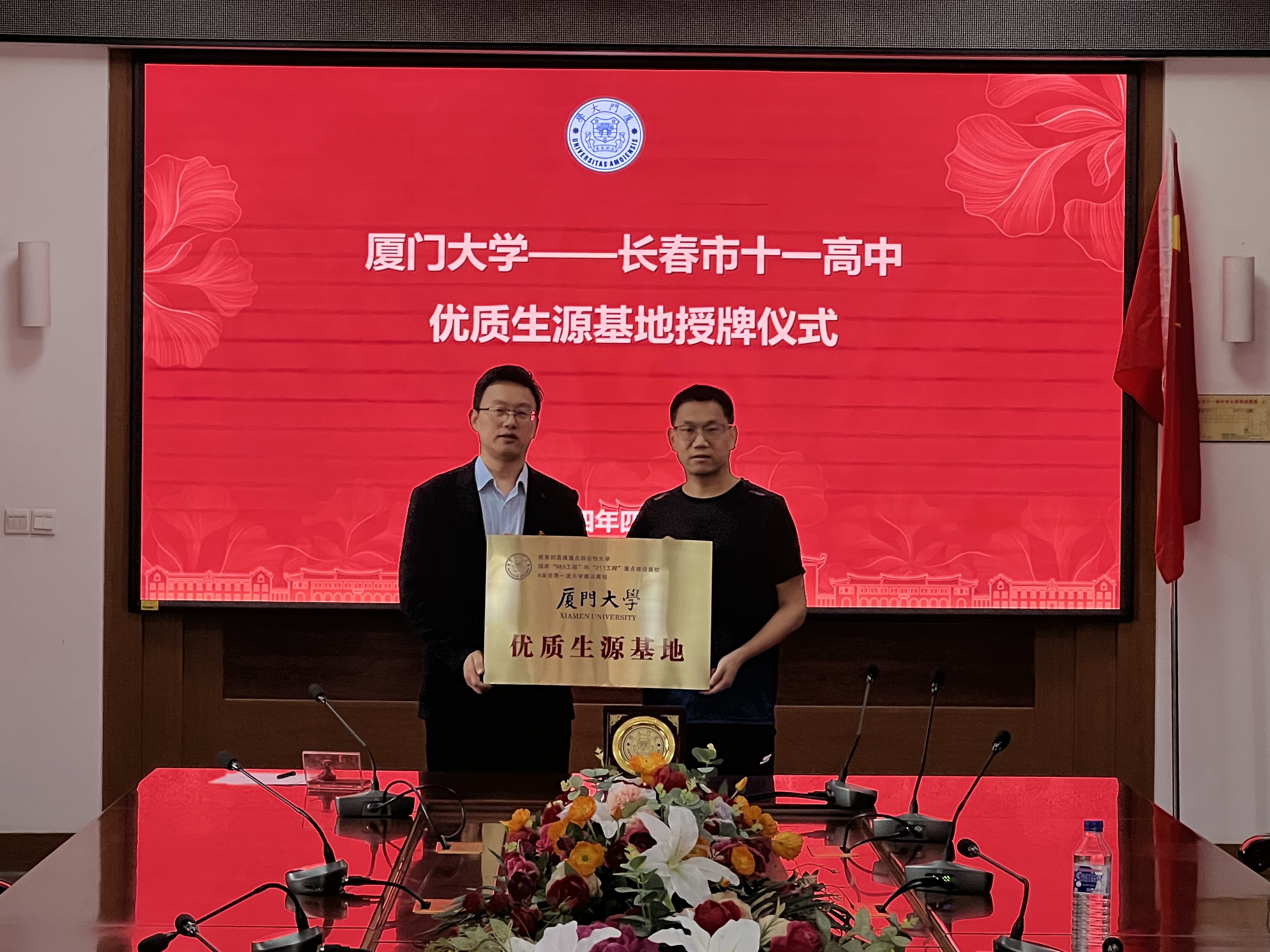 27日,宣传组前往长春市十一高中授牌优质生源基地。长春市十一高中作为吉林省知名高中之一,其教育质量和教学水平一直备受赞誉,本次授牌不仅进一步加强了厦大与长春市十一高中的合作关系,也为顺利开展下一步招生宣传工作打下了坚实的基础。相信在双方的共同努力下,未来将有更多优秀的学子报考厦大。
