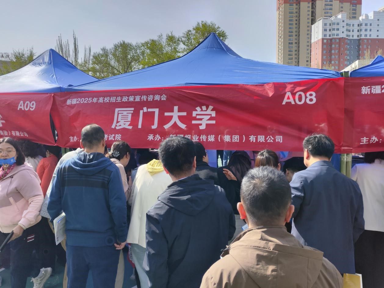 4月19日,新疆2025年首场高校招生咨询会在乌鲁木齐八一中学五星路校区举办。在厦门大学展位前,厦门大学新疆校友会庄丽、谭霞和厦门大学电影学院研究生秘书李锦泽耐心细致地为考生及家长解答疑问,内容涵盖学校招生政策、招生专业、培养模式、就业情况和历年分数线等情况,该咨询会为考生和家长们提供了宝贵的现场面对面咨询机会。