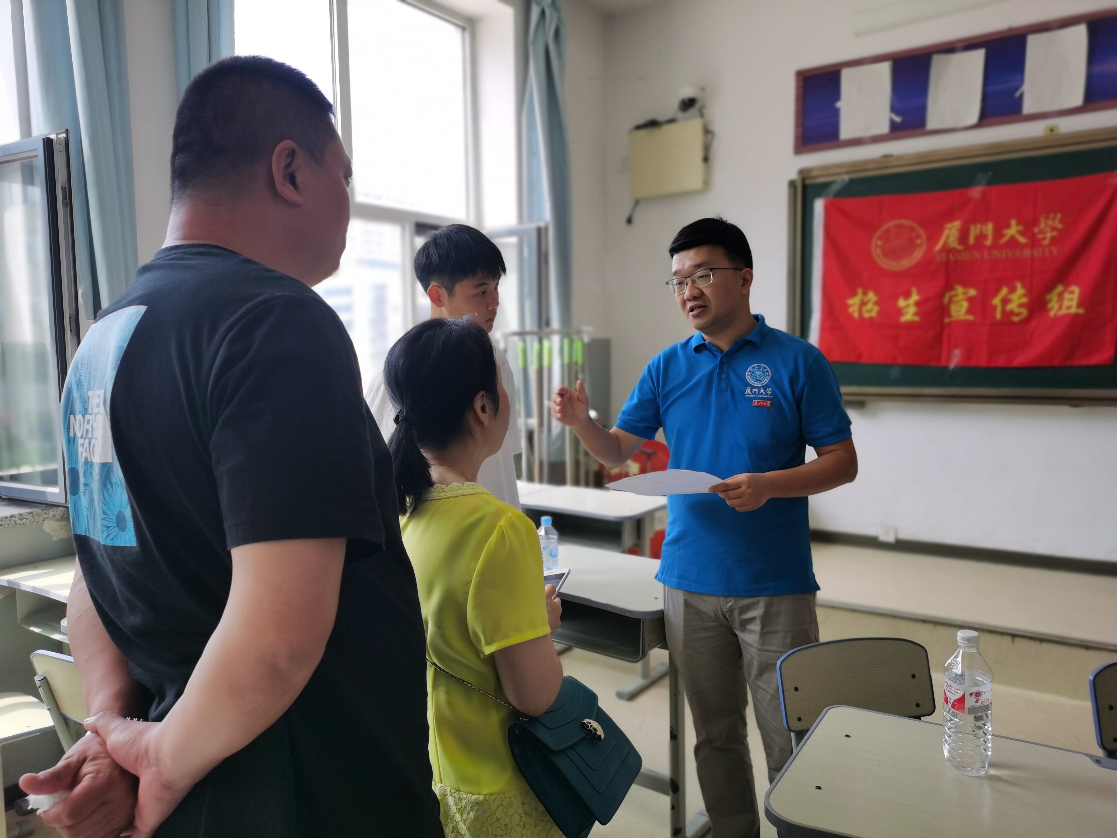 22日,招生宣传组一行分赴吉林省三地进行准备。23日,林公明带领的长春组和吉林校友会校友们首先前往东北师范大学附属中学进行招生宣讲,为考生和家长提供咨询服务,为每一位前来咨询的考生和家长答疑解惑。招生宣传组还通过组建QQ群、咨询电话等联系方式,建立线上线下全位的咨询服务体系,旨在帮助考生和家长更深入地了解厦门大学,提供详实的信息,解答他们的问题,吸引优质生源报考厦门大学。