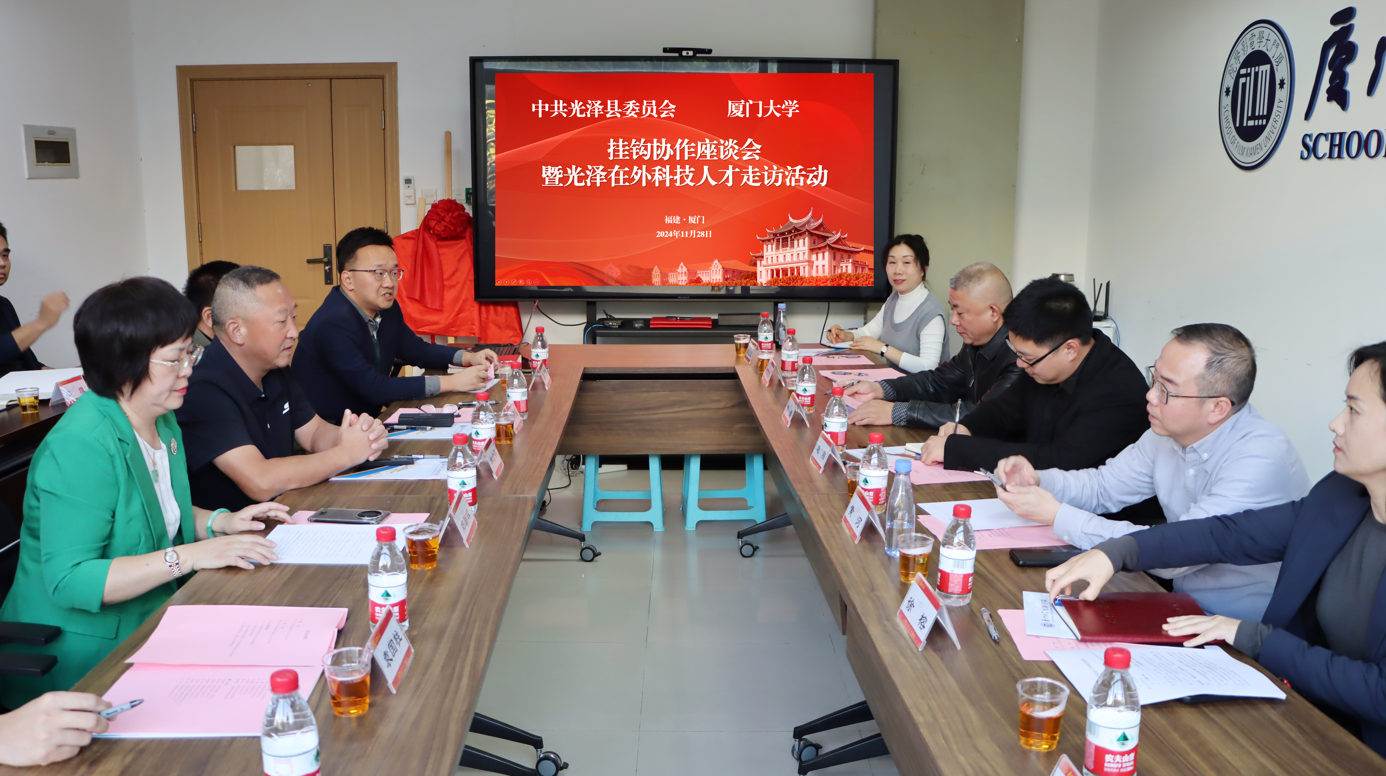 11月28日下午,光泽县委副书记黄河带队到厦门大学电影学院对接挂钩帮扶工作,并走访光泽在外科技人才。校党委常委、副校长邓朝晖出席会议,会议由电影学院党委副书记张晴主持。