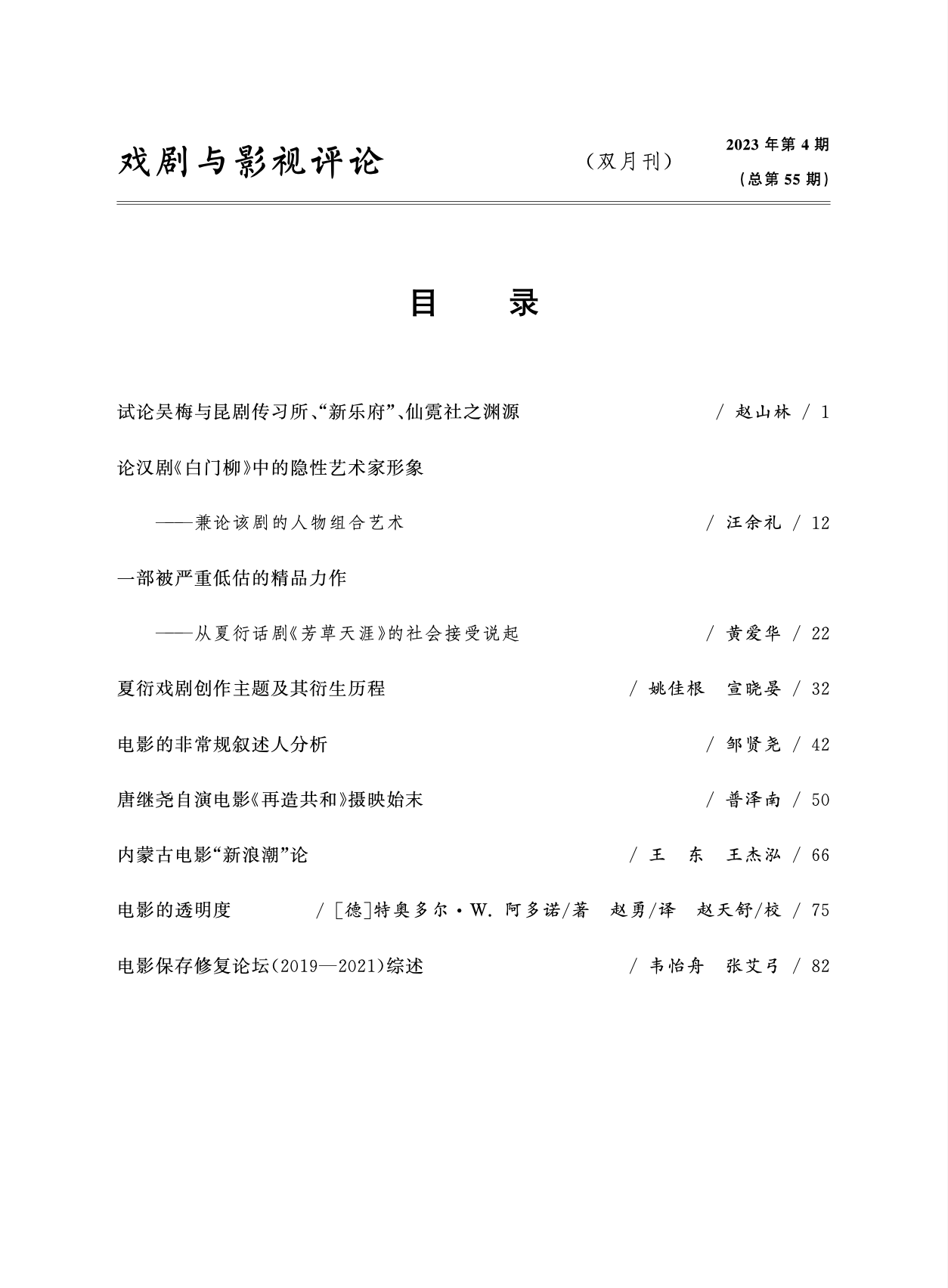 作者简介: 黄爱华, 女,1962 年生, 杭州师范大学人文学院教授, 戏剧学博士。研究方向: 中国现当代戏剧、 比较戏剧。夏衍写作于1944—1945年间的四幕话剧《芳草天涯》是一部被严重低估的精品力作。对《芳草天涯》的再评价,必须重返历史现场并回归文本。通过对《芳草天涯》社会接受的历史考察和文本细读,可知它有着深广的现实主义精神和丰赡的审美价值。《芳草天涯》在夏衍的知识分子叙事中具有在地性写作的特征,不愧是一部真实、鲜活、洗练的书写当下的现实主义力作,无论是对现实主义创作规律的遵循、对现实生活的真实反映、对鲜活人物的塑造,还是心理描写的细致入微和叙事的简洁洗练,都达到了一个新的高度,代表了夏衍剧作的最后一座高峰,不愧是20世纪三四十年代中国现实主义戏剧走向深化的又一成功典范和优秀代表作。关键词: 夏衍 《芳草天涯》 抗战戏剧 社会接受 现实主义